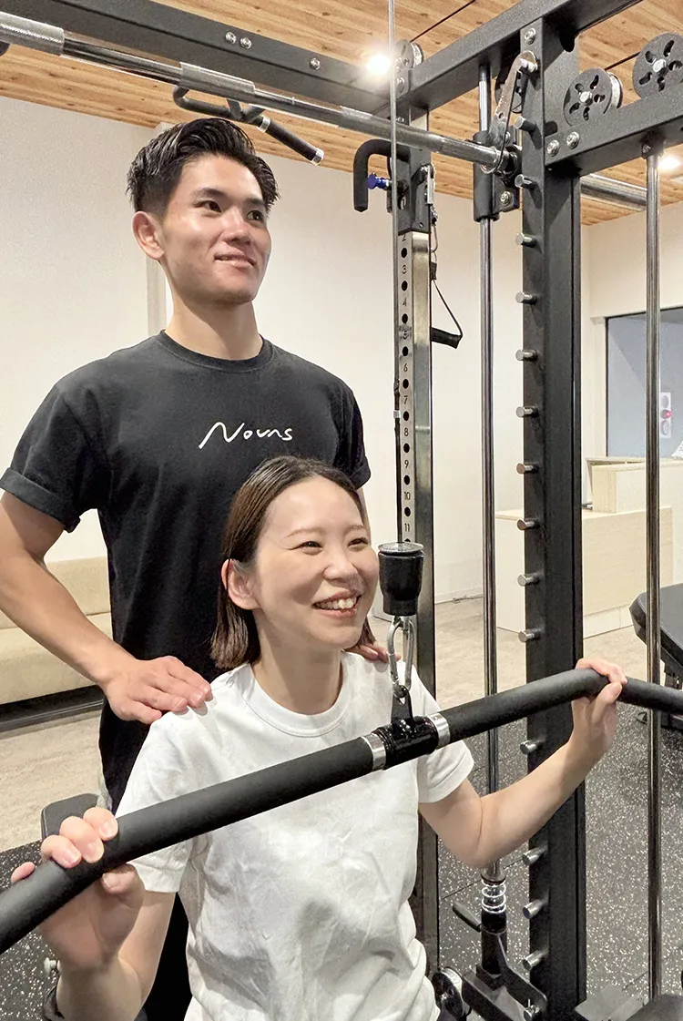 パーソナルトレーナーのサポートで効果的に筋肉を追い込みます。約3ヶ月で変化を実感いただけることが多いです。